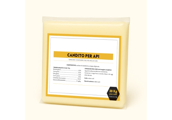 A differenza degli sciroppi liquidi, il candito è ideale per i periodi freddi poiché non aumenta l'umidità interna all'arnia e non rischia di stimolare il saccheggio. È di facile somministrazione e garantisce una disponibilità costante di alimento solido, rispettando il naturale comportamento di prelievo delle api.